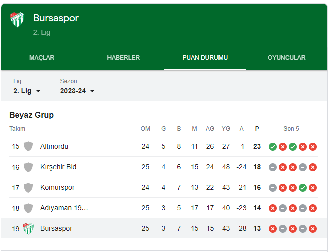 Bursaspor’un bu zorlu süreci, taraftarları üzüntüye boğuyor. Kulüp tarihinin en kötü dönemlerinden birini yaşıyor. Taraftarlar, takımlarının bu zorluğun üstesinden gelmesini umut ediyor. Ancak, geçmiş istatistiklere bakıldığında, bu hedefe ulaşmanın zor olacağı açıkça görülüyor.